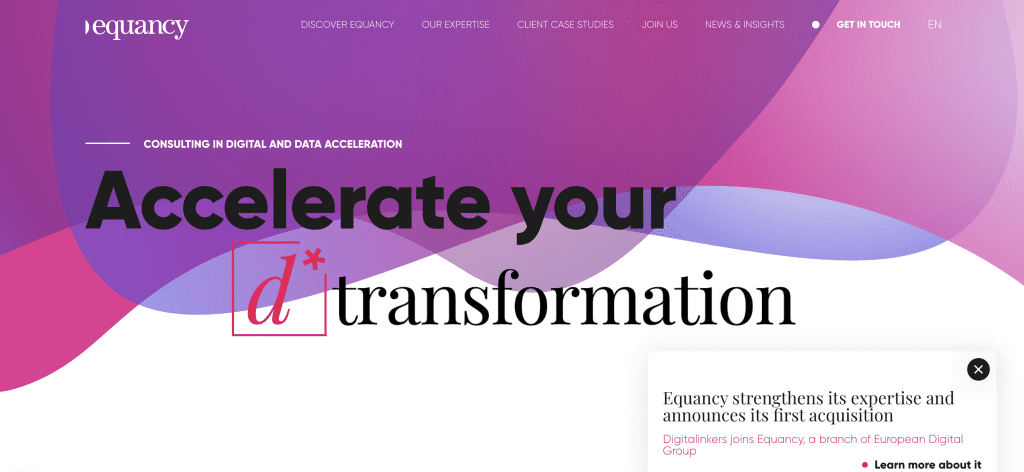 Equancy se distingue surtout sur la dimension conseil en data, CRM et marketing data. Dans un top Tracking & Data, sa place est cohérente pour les entreprises qui ne cherchent pas seulement à poser des tags, mais à mieux structurer la circulation, l’exploitation et la gouvernance de la donnée marketing. C’est une option crédible pour des problématiques plus larges que la seule implémentation technique.