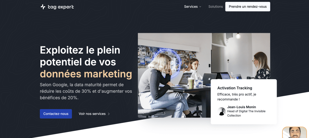 Tag Expert est l’un des noms les plus crédibles du marché français dès qu’on parle de tracking, analytics, Google Tag Manager et conformité. Son positionnement est net, ce qui est déjà un avantage dans un marché où beaucoup d’agences se disent “data” sans vraie profondeur technique. Pour des entreprises qui veulent fiabiliser leur collecte, améliorer la qualité de leur mesure et remettre de l’ordre dans un écosystème de tags parfois chaotique, c’est une option particulièrement solide.
