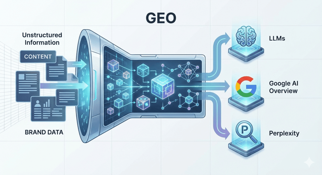 Une agence GEO (Generative Engine Optimization) est une agence spécialisée dans l’optimisation de la visibilité d’une marque sur les moteurs de recherche à intelligence artificielle. Contrairement au SEO classique qui vise le positionnement sur Google, le GEO cible les réponses générées par ChatGPT, Perplexity, Claude, Gemini et Google AI Overview.
